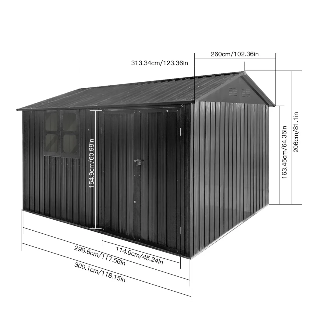 Domek Narzędziowy z oknem Ogrodowy Garaż Metalowy Tracy 300X260X206CM